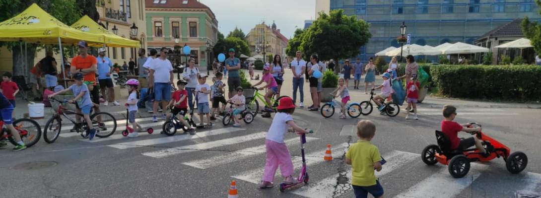 A városközpontban sátrakat állítottunk fel, ahol különféle interaktív, kerékpáros tematikájú foglalkozások és versenyek várták a gyermekeket. A program kiemelten foglalkozott: